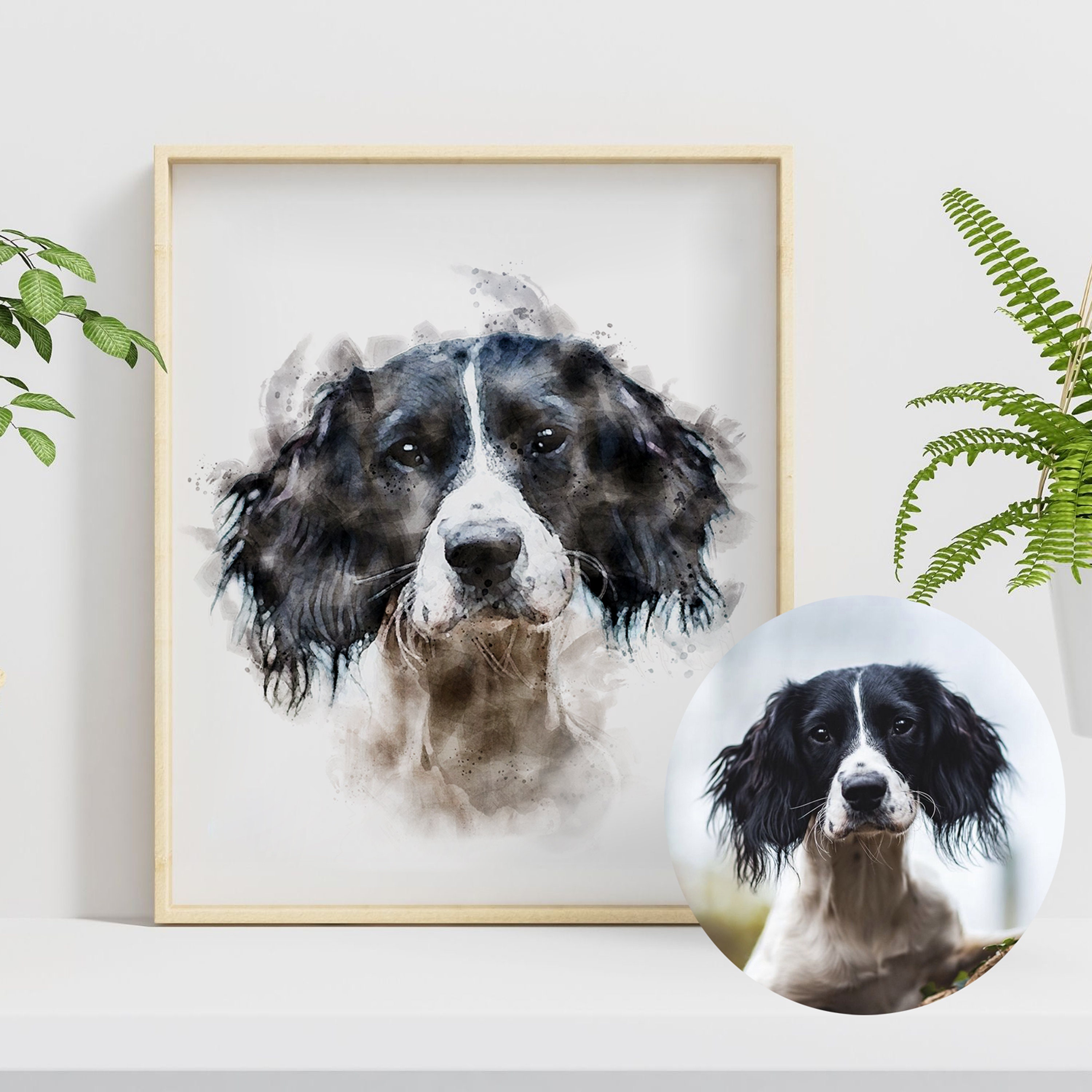 Custom pet portrait from your photo of your pet. This digital watercolour style pet portrait is printed on high-quality 245gsm watercolour paper (unframed), Framed prints or on Stretched ready to hang Canvas. Bespoke sizes available, please message with you requirements.