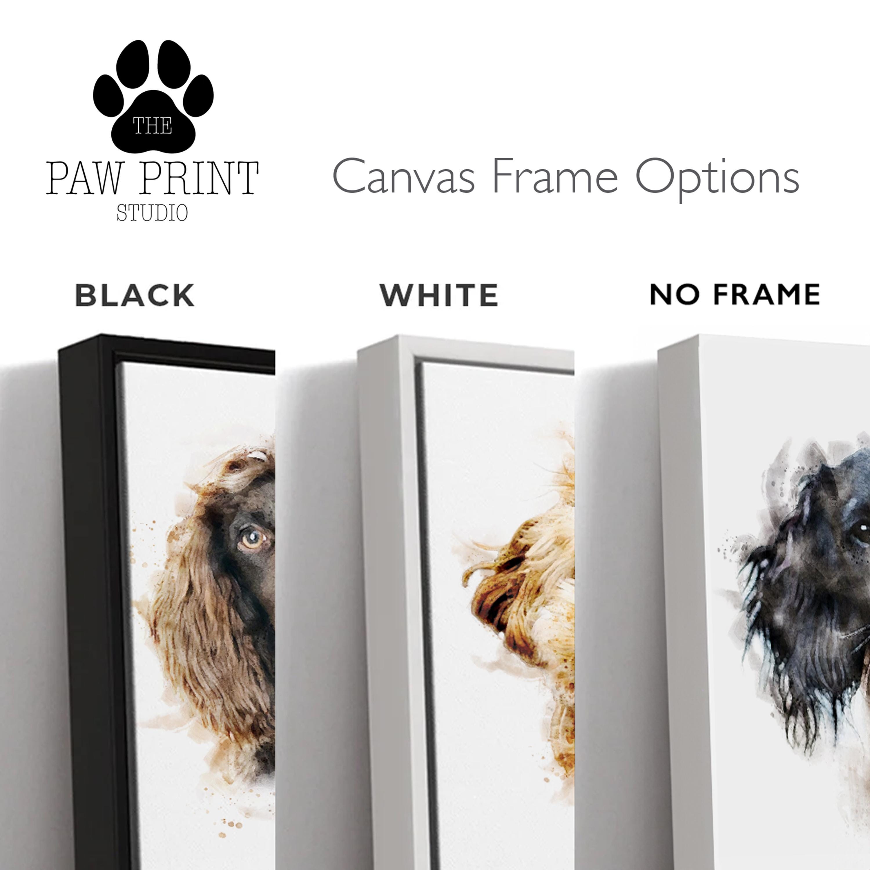 Your pet portrait will be completely unique, created from a high-resolution photograph of your pet. You can also add text to your portrait such as a name, date, or a short personal message if you wish. Professionally printed on 245gsm textured watercolour paper stretched canvas, ready to hang.