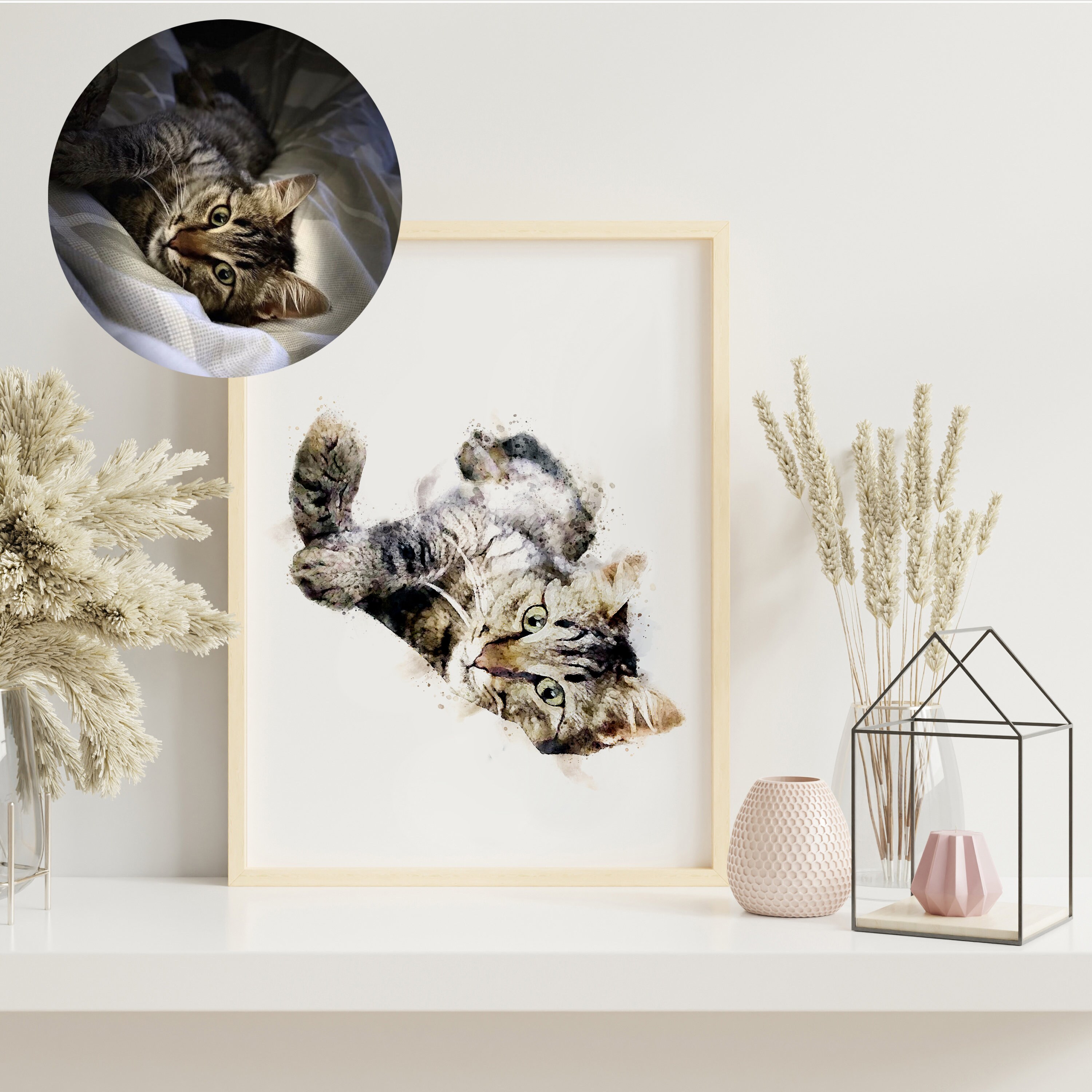 Custom dog portrait, pet loss gifts, a pet memorial, pet painting, dog memorial gift, cat loss gift or a personalised pet watercolour, this custom pet print will look amazing anywhere in the house.