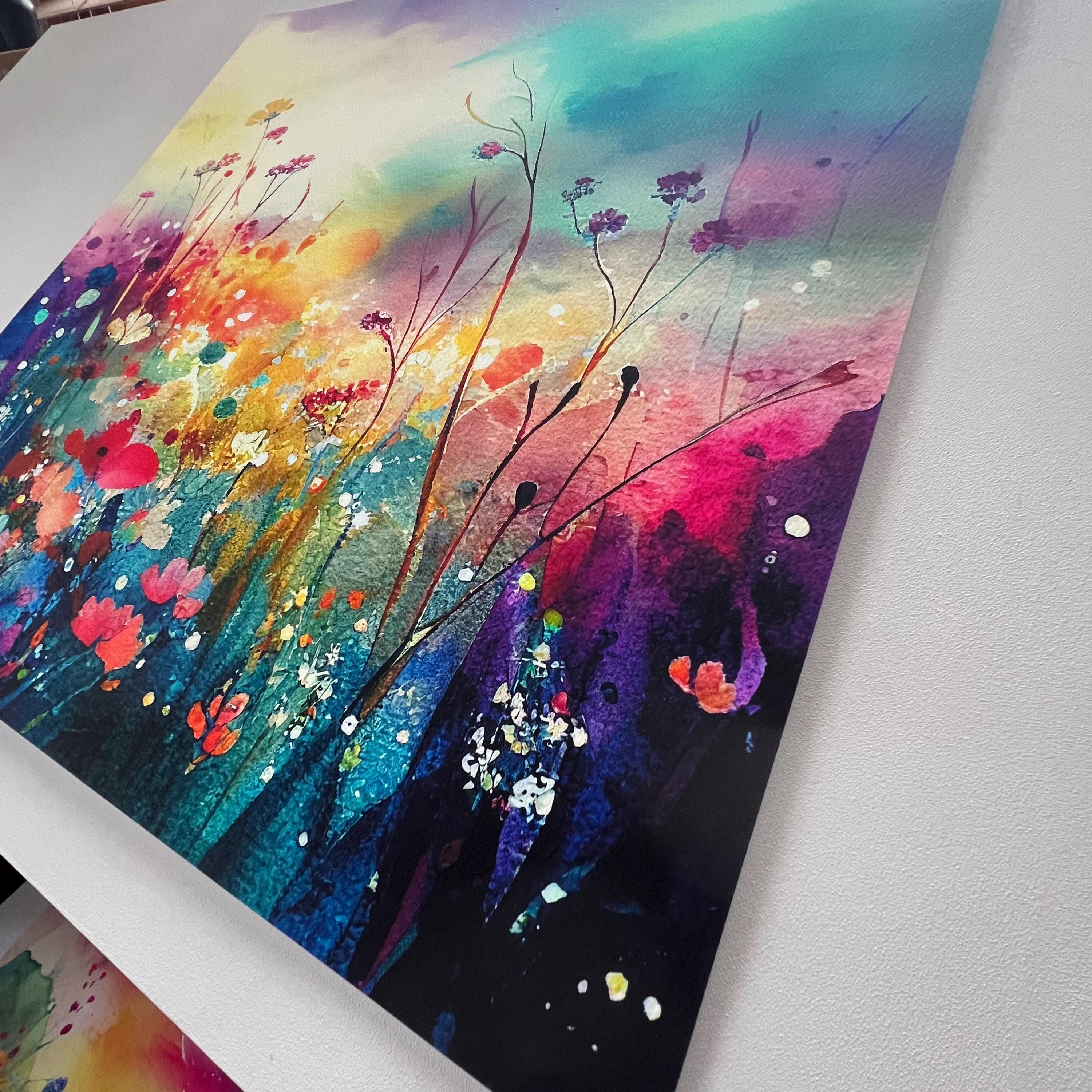 Wildflower meadow painting, framed prints and canvas prints. Perfect for adding a pop of colour and a touch of whimsy to any room in your home. Flower prints available in a variety of sizes, add a little bit of the outdoors to your indoor space!