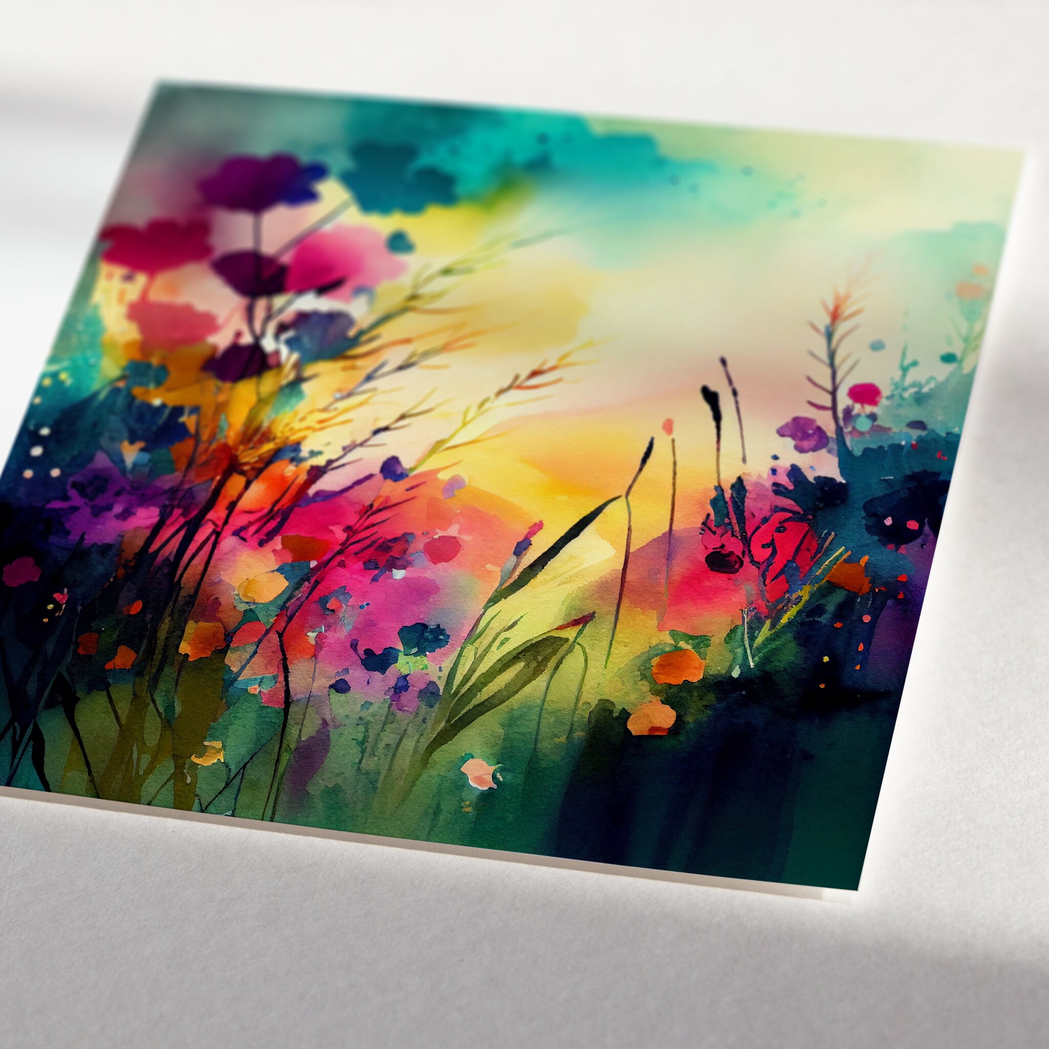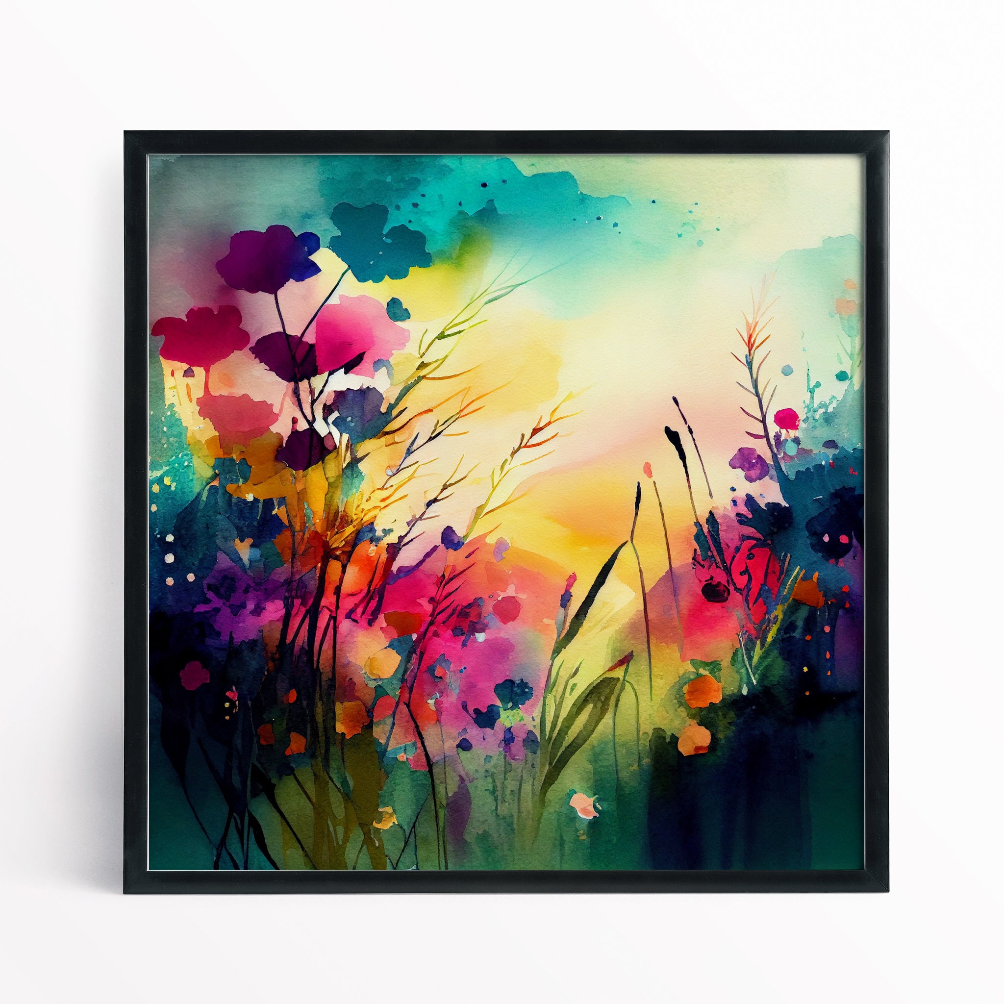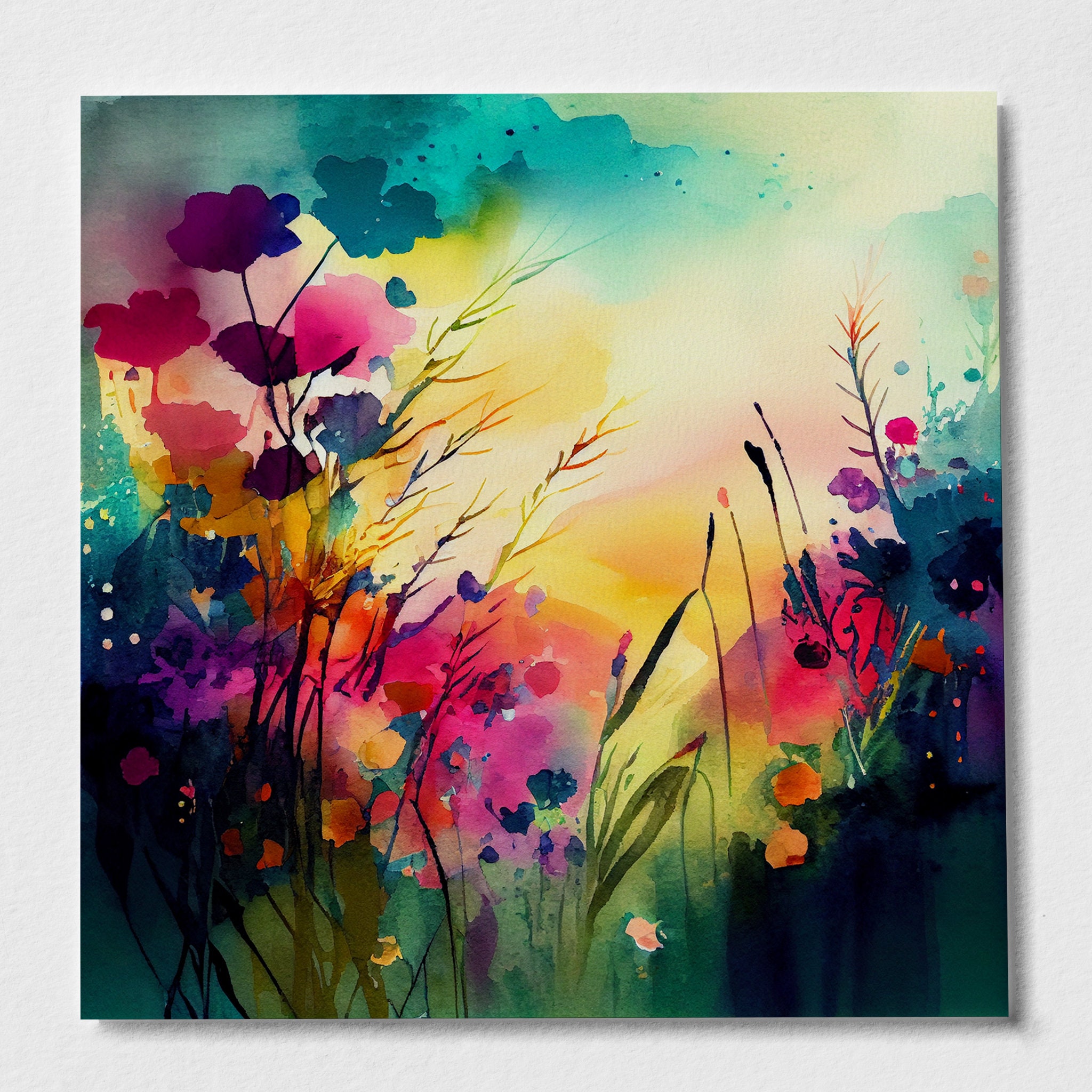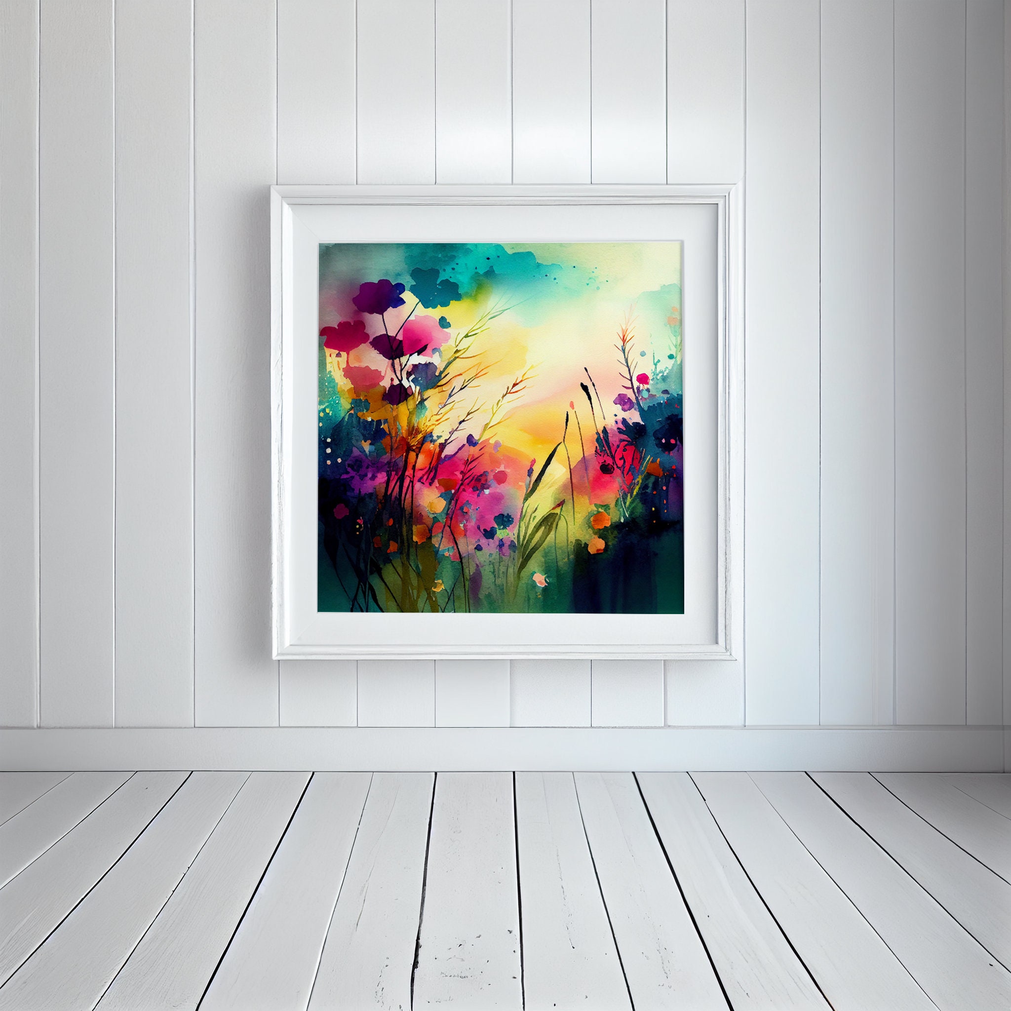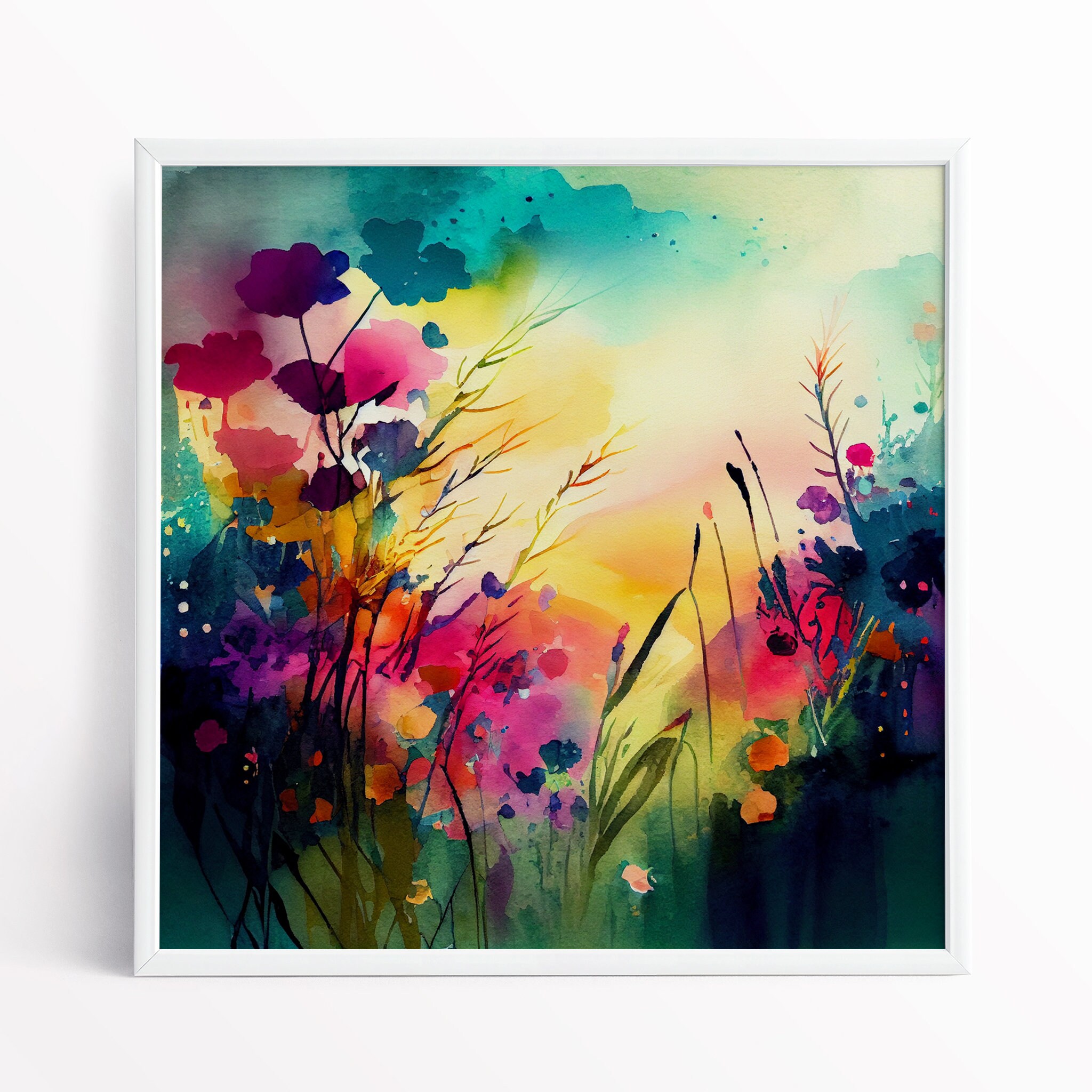 Flower meadow Painting - framed watercolour prints and canvas prints. Perfect for adding a pop of colour and a touch of whimsy to any room in your home. Flower prints available in a variety of sizes, add a little bit of the outdoors to your indoor space!