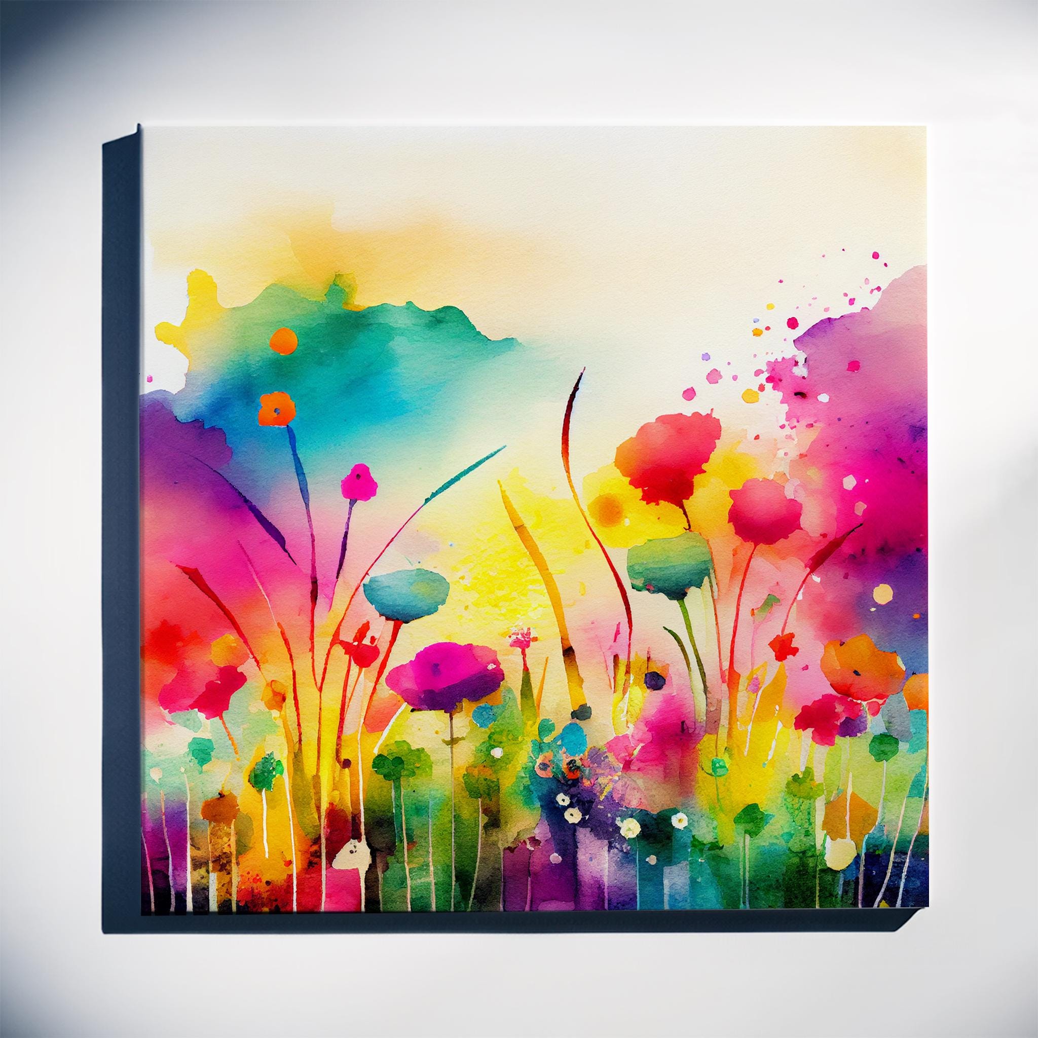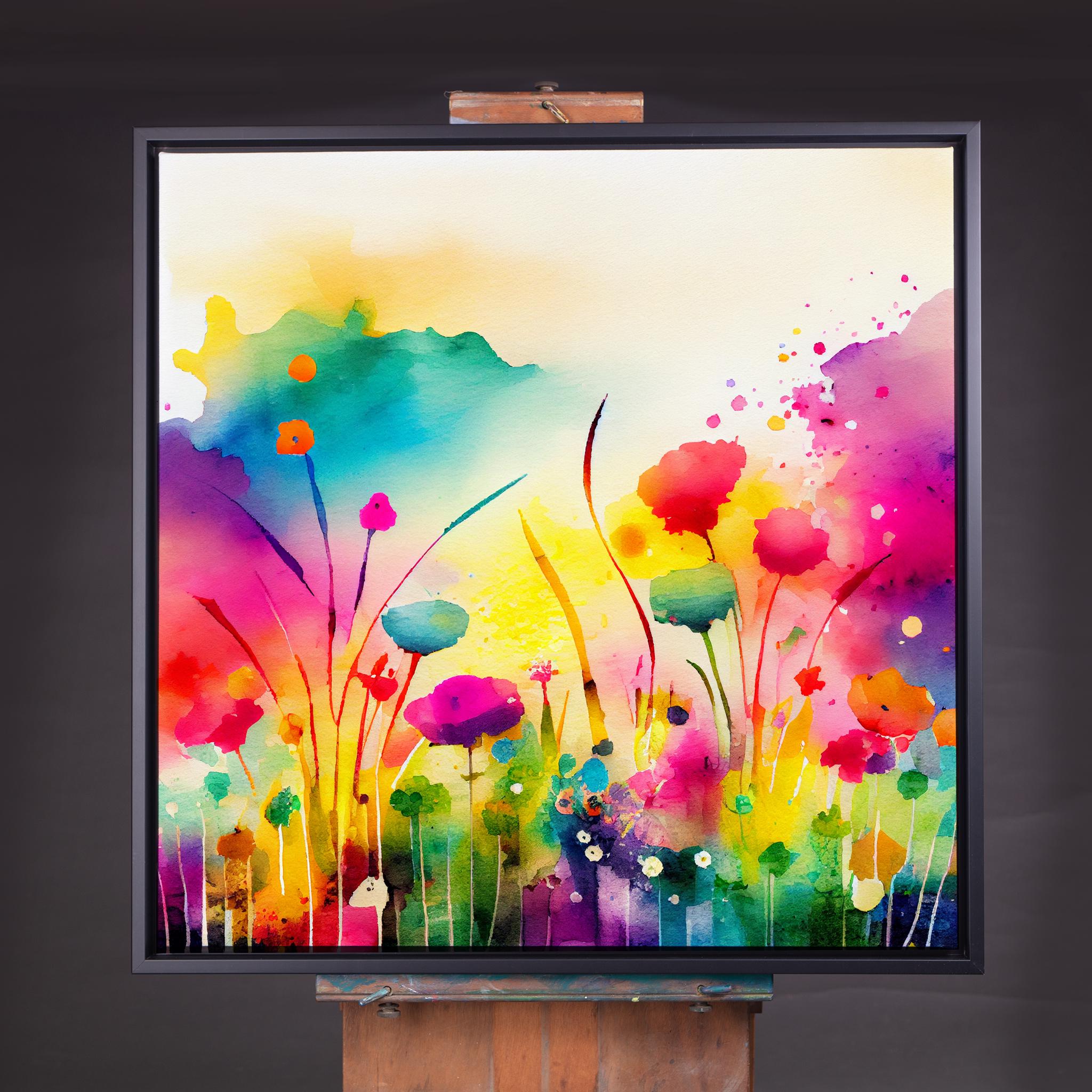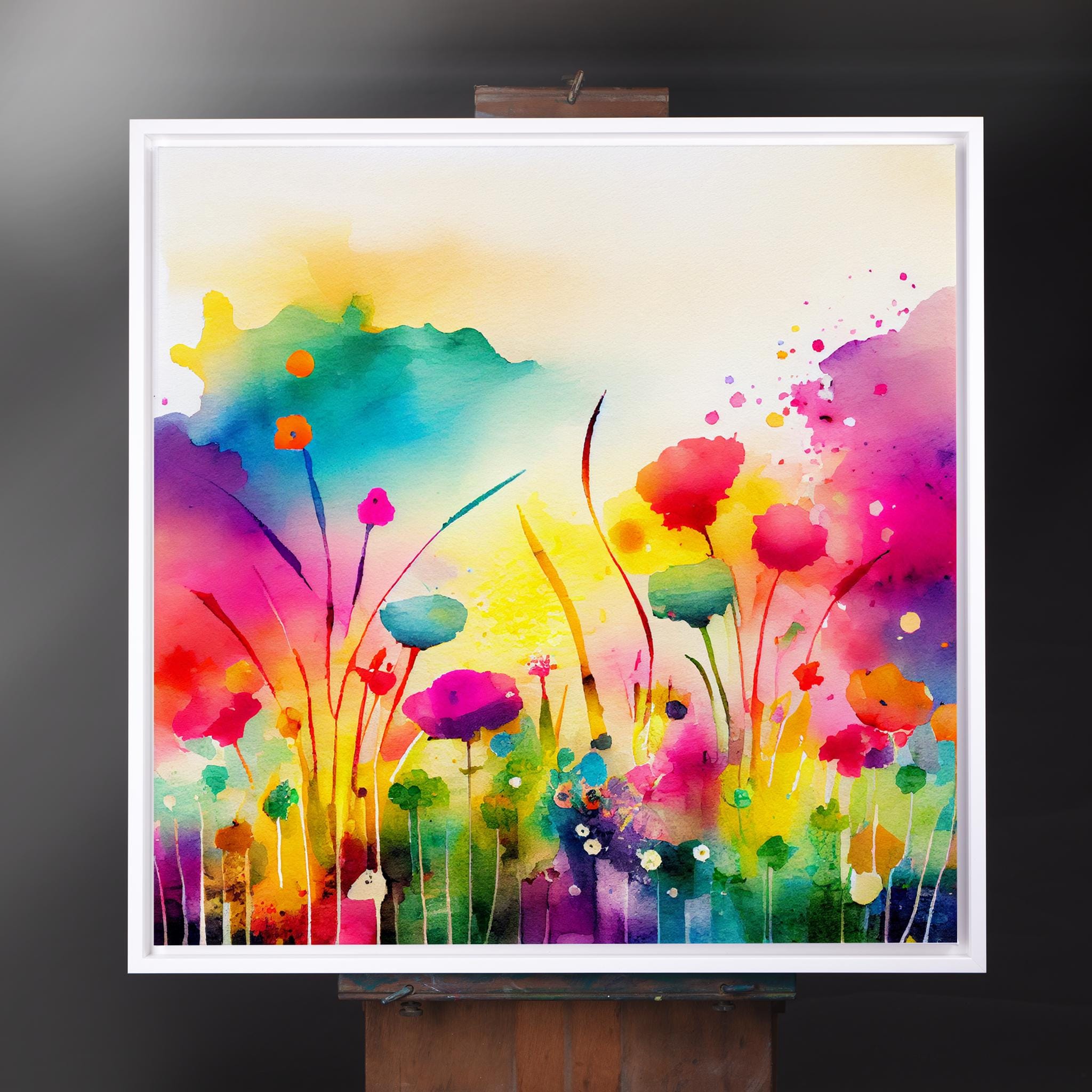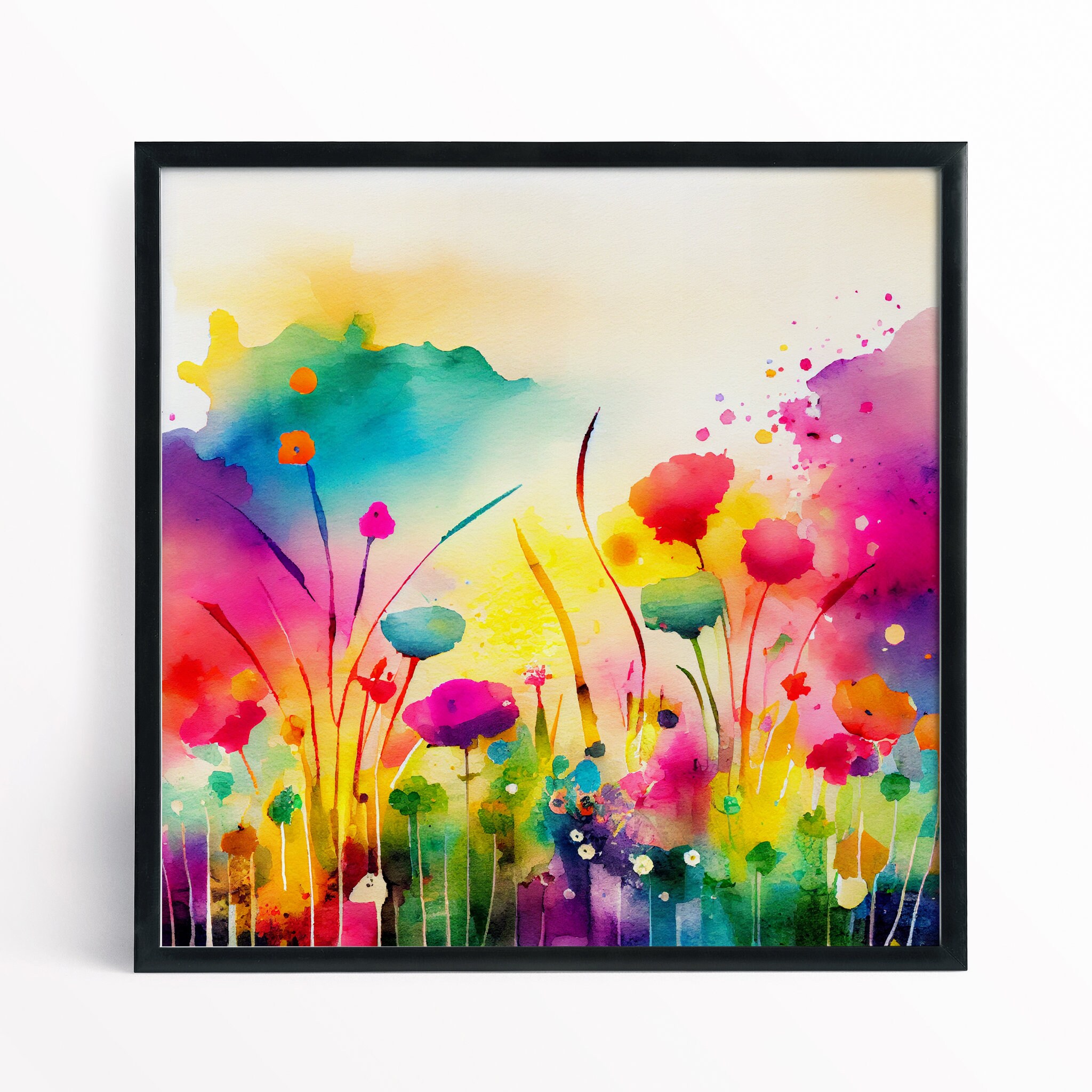 Vibrant Flower Meadow Painting Abstract Wildflower Framed Print. Perfect for adding a pop of colour and a touch of whimsy to any room in your home. Available in a variety of sizes, add a little bit of the outdoors to your indoor space!