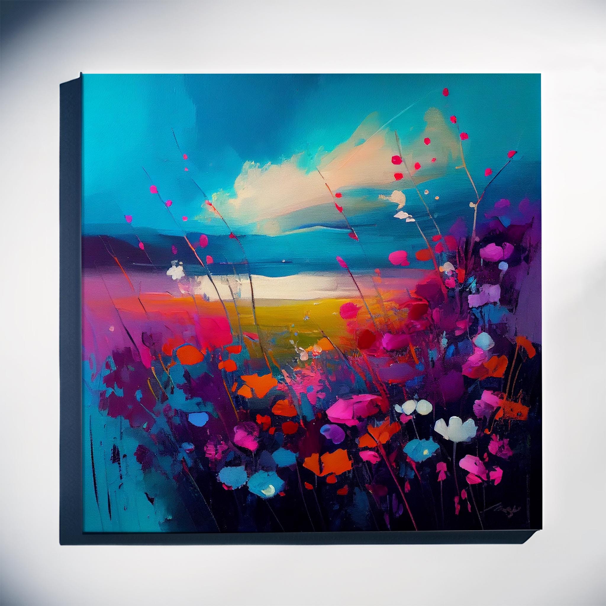 Abstract wildflower meadow painting, abstract flower print. Bring the beauty & wonder of a wildflower meadow into your home with these bright, vibrant & vivid prints of my original abstract wildflower painting. Perfect for adding a pop of colour and a touch of whimsy to any room in your home. Available in a variety of sizes, add a little bit of the outdoors to your indoor space!