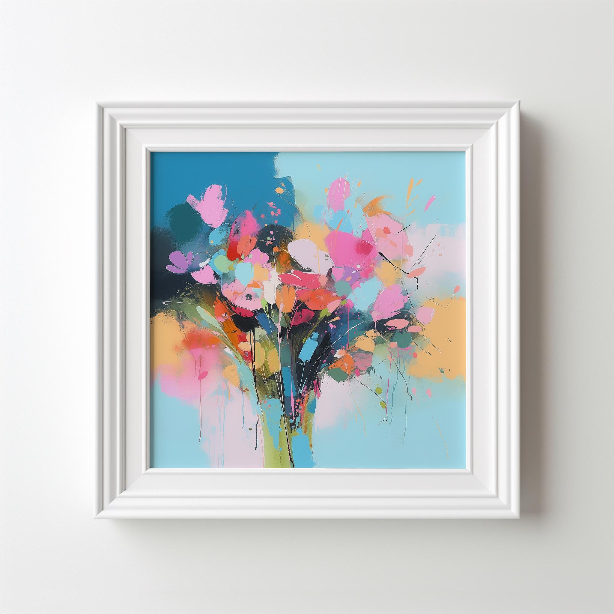 Bunch of flowers Painting Abstract Wildflower Meadow , framed watercolour prints and canvas prints. Perfect for adding a pop of colour and a touch of whimsy to any room in your home. Flower prints available in a variety of sizes, add a little bit of the outdoors to your indoor space!