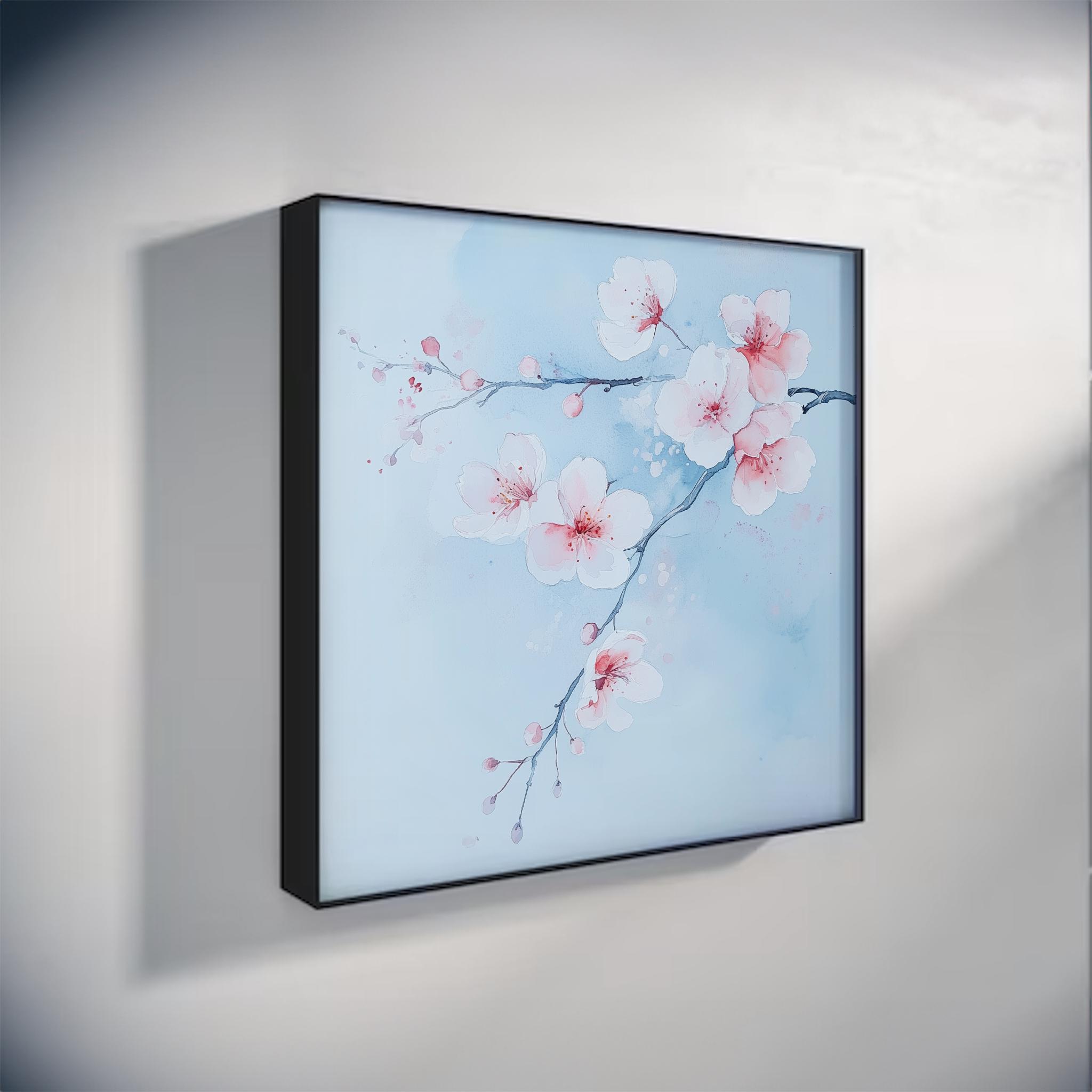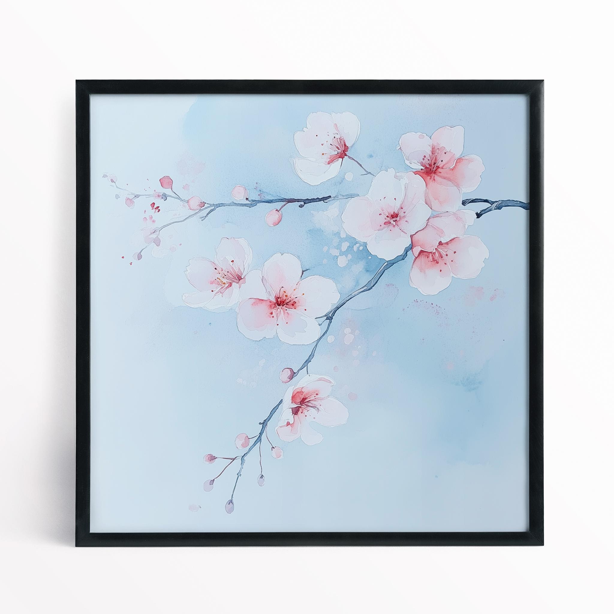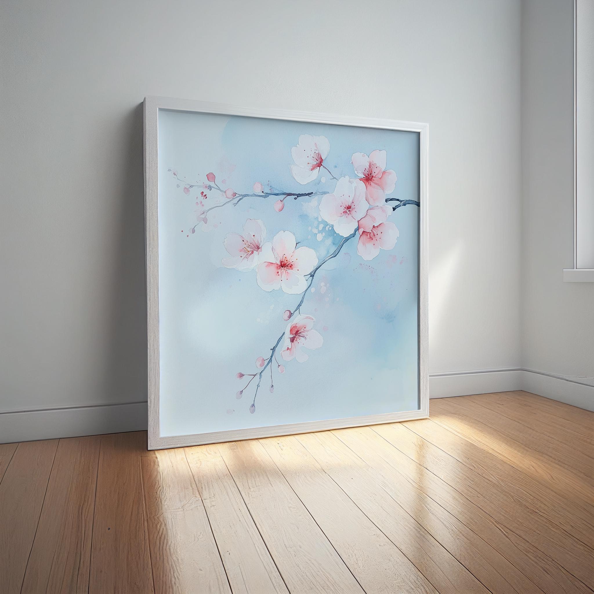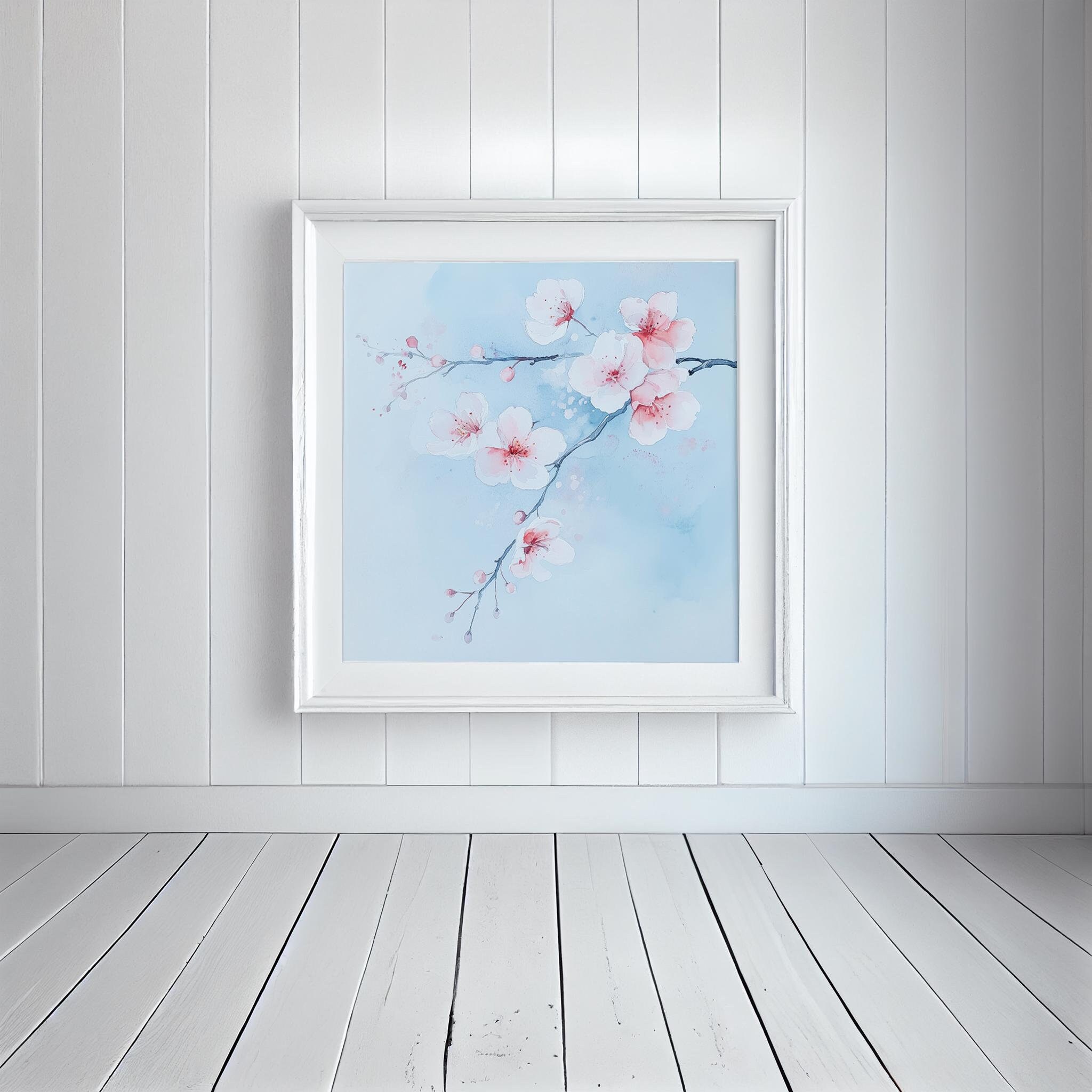 Contemporary Cherry Blossom Painting on a Blue Background. Bring the beauty & wonder of spring into your home with these bright, vibrant & vivid prints. They would be perfect for adding a pop of colour and a touch of whimsy to any room in your home. Available in a variety of sizes, add a little bit of the outdoors to your indoor space!