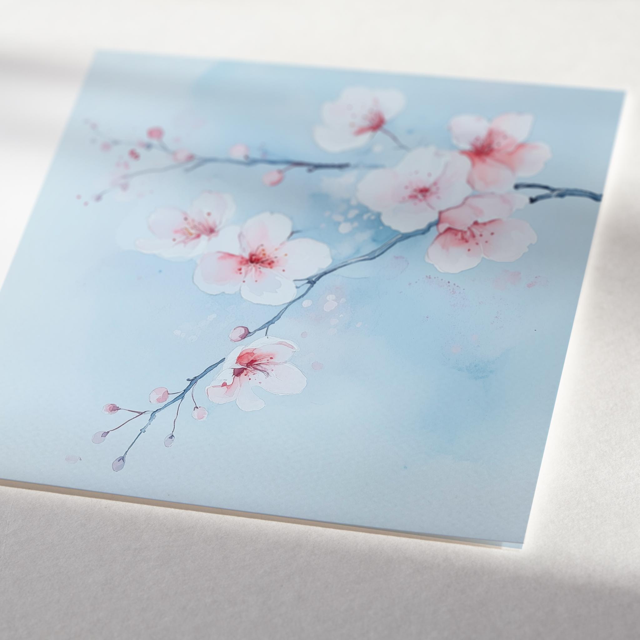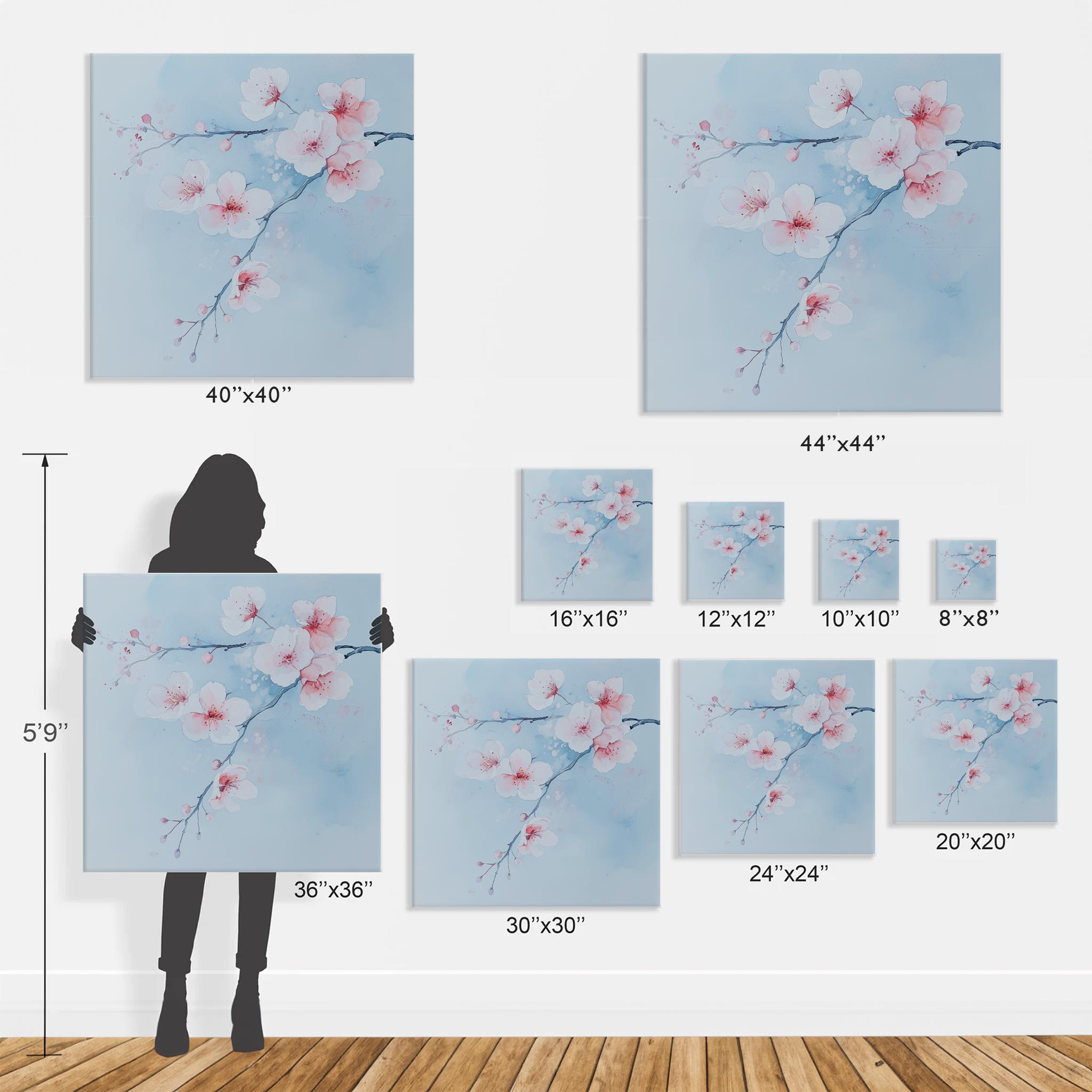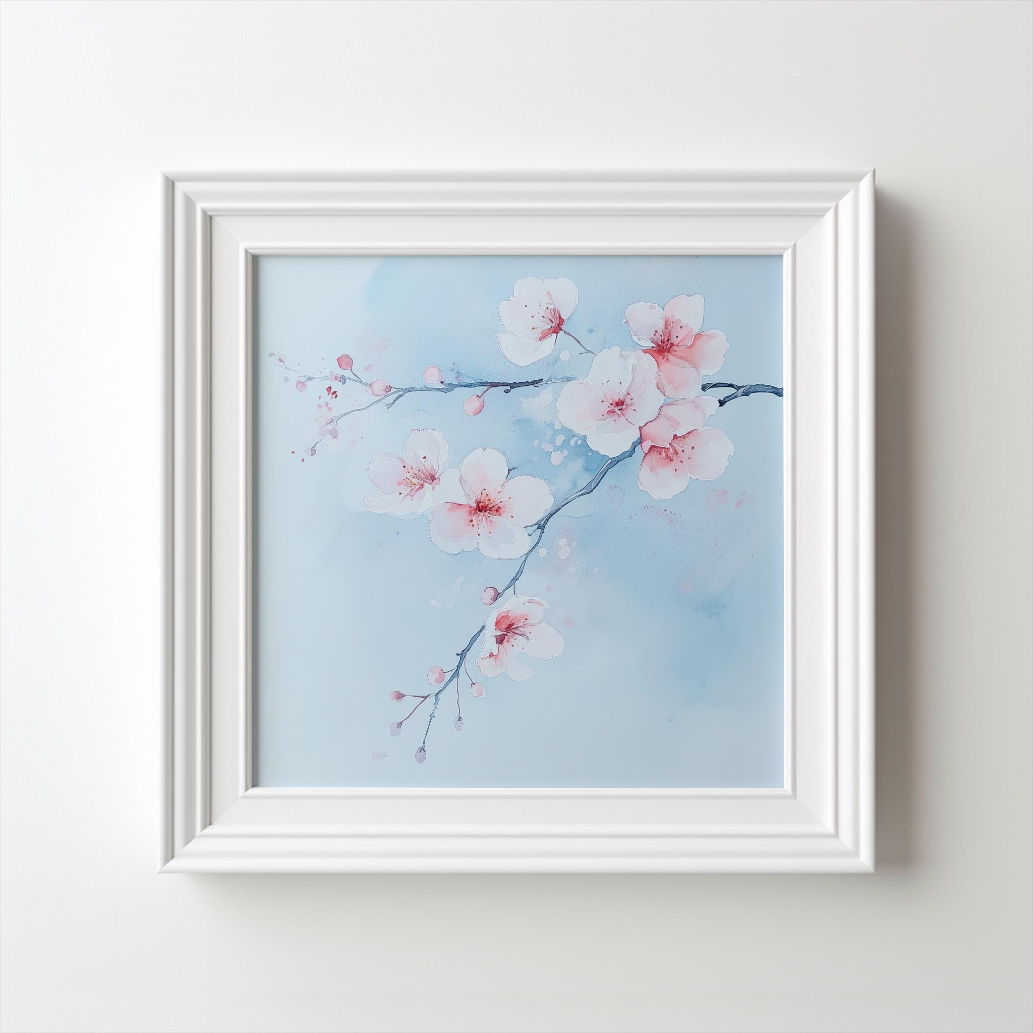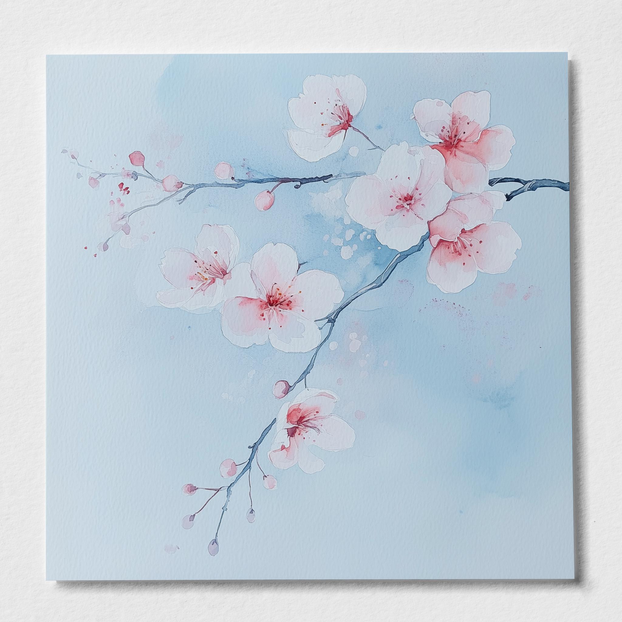Contemporary Cherry Blossom Painting on a Blue Background. Bring the beauty & wonder of spring into your home with these bright, vibrant & vivid prints. They would be perfect for adding a pop of colour and a touch of whimsy to any room in your home. Available in a variety of sizes, add a little bit of the outdoors to your indoor space!